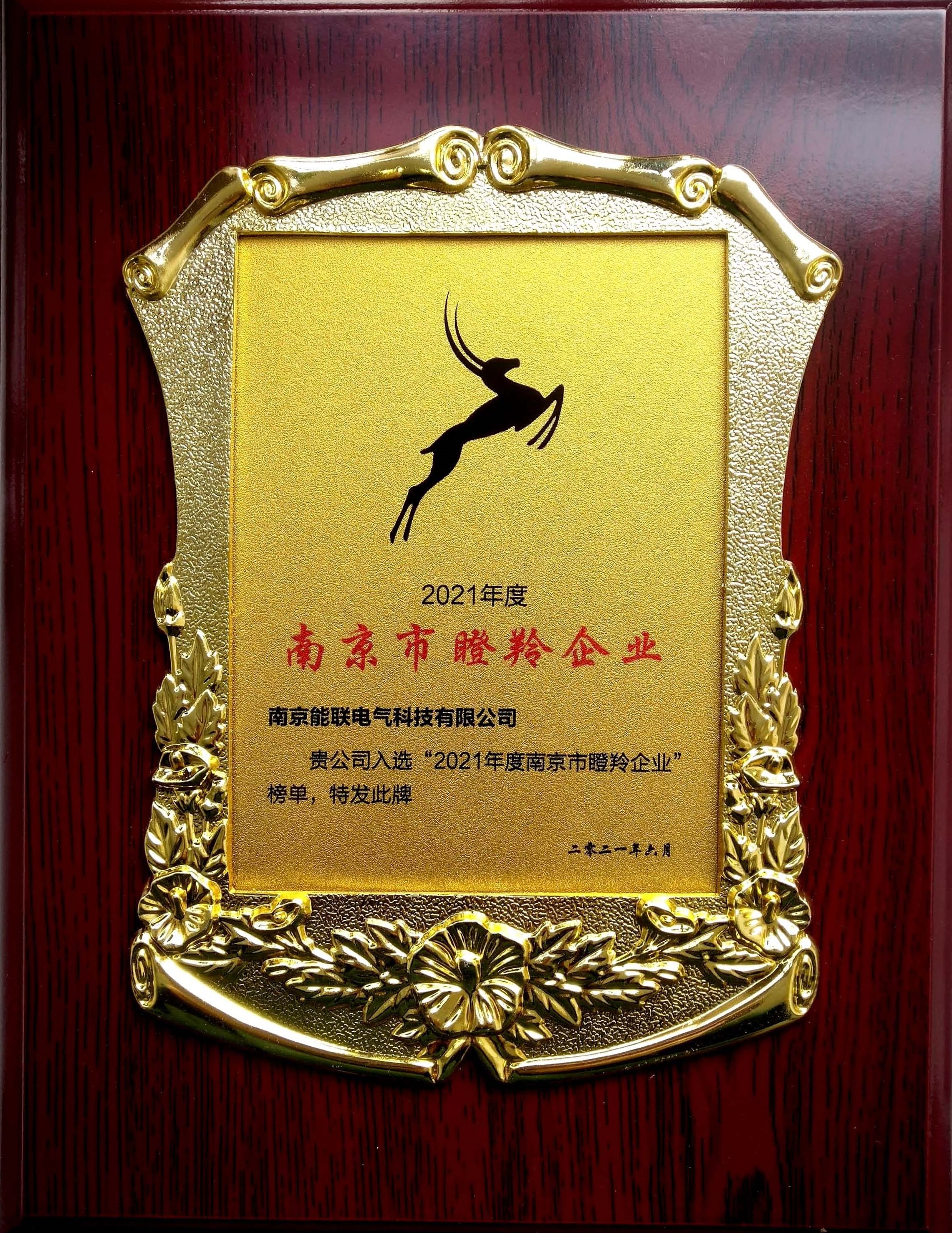 2021年度南京市瞪羚企業(yè)入選證書