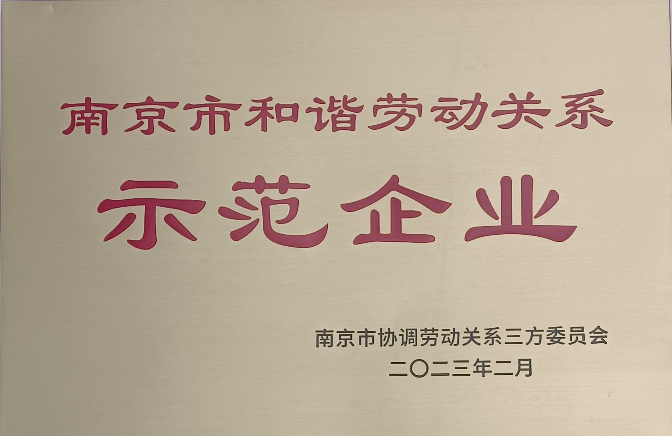 南京市和諧勞動(dòng)關(guān)系示范企業(yè)證書(shū)